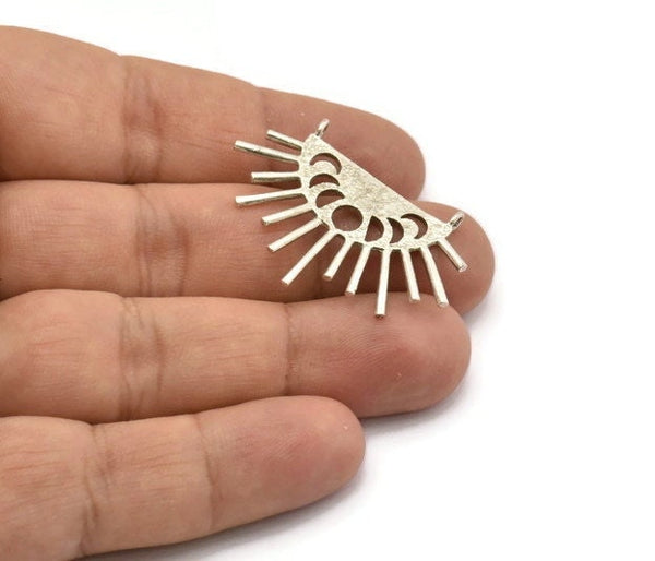 Antique Silver Plated Brass Half Moon Pendants With 2 Loops