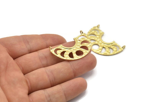 Moon Phases Pendant, 3 Raw Brass Semi Circle Pendants With 2 Loops, Earring Findings (37x14x0.8mm) U144