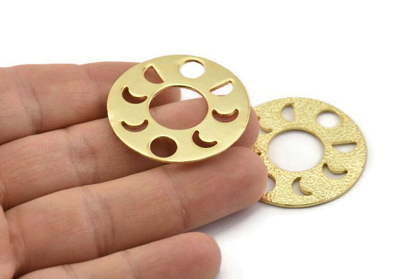 Moon Phases Pendant, Gold Plated Brass Circle Pendants, Earring Findings (34x1mm) U113