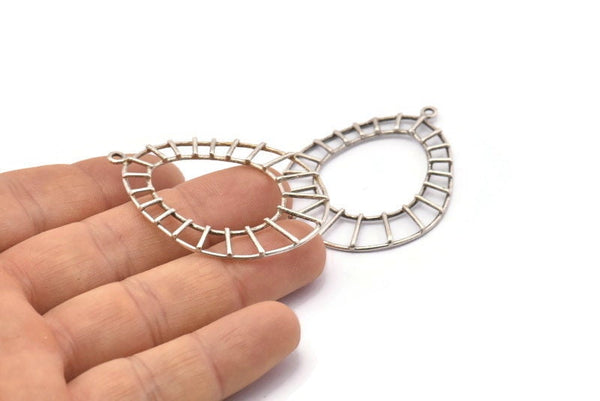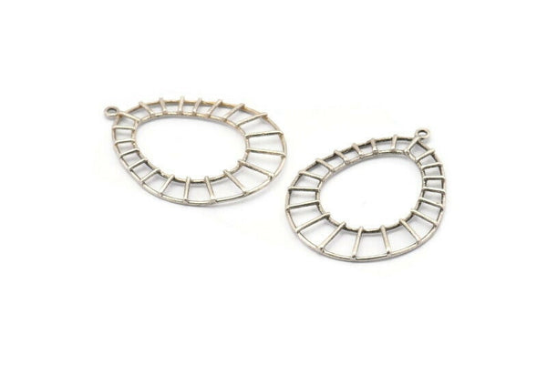 Antique Silver Plated Brass Textured Oval Geometric Pendants With 1 Loop