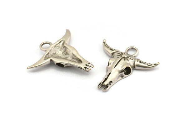 Antique Silver Plated Brass Ox Head Skull Charms With 1 Loop