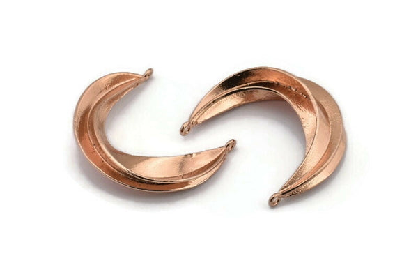 Rose Gold Ethnic Pendant, Rose Gold Plated Brass Crescent Pendants With 2 Loops, Earring Findings (37x32mm) N0860