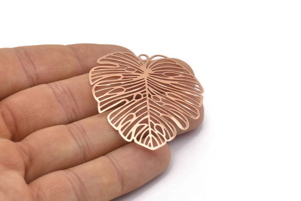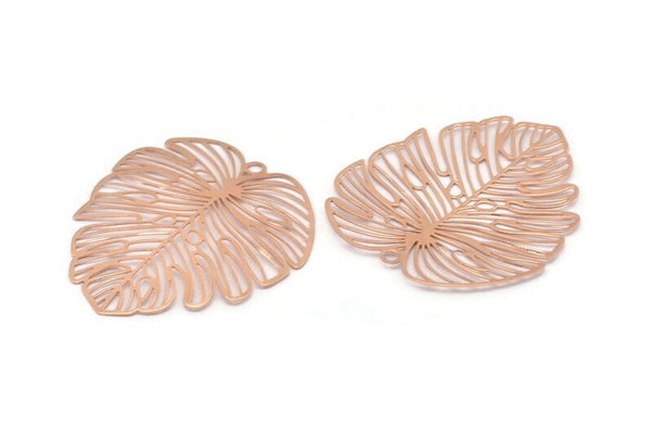 Rose Gold Plated Brass Monstera Leaf Charms With 1 Loop