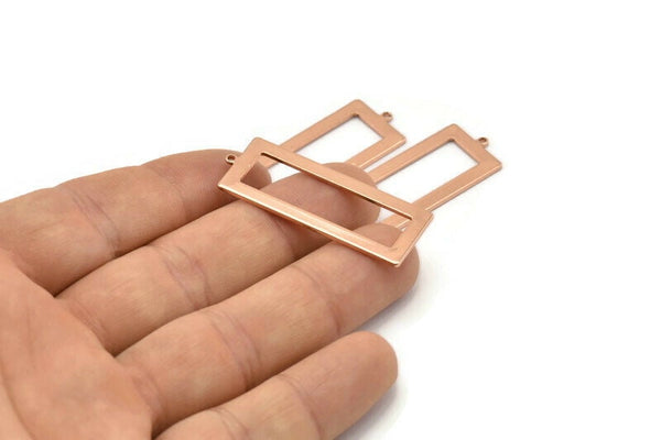 Rose Gold Rectangle Charm, 2 Rose Gold Plated Brass Rectangle Charms With 1 Loop, Earrings, Pendants, Findings (40x15x1mm) D0682 H0930