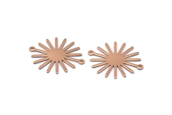 Rose Gold Sun Charm, 4 Rose Gold Plated Brass Sun Connectors With 2 Loops, Pendants (29x25x0.80mm) M01655 H0600