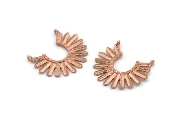 Rose Gold Plated Brass Textured Sun Pendants With 2 Loops