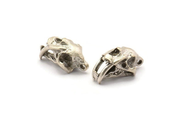 Sabre Tooth Cat, 2 Antique Sİlver Plated Brass Sabre Tooth Cat Skull Pendants, (21x11x12mm) N0485 H0166