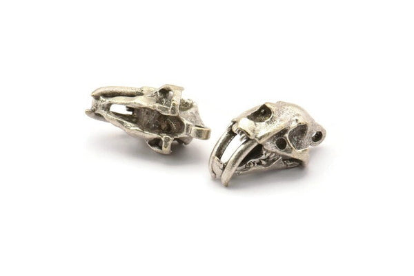 Sabre Tooth Cat, 2 Antique Sİlver Plated Brass Sabre Tooth Cat Skull Pendants, (21x11x12mm) N0485 H0166