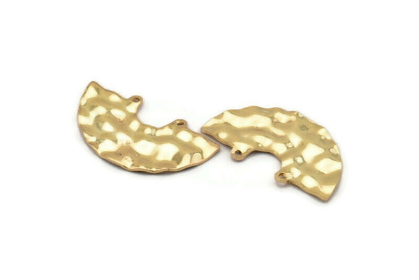 Semi Circle Charm, 2 Gold Plated Brass Hammered Semi Circle Charm Pendants With 2 Holes (35x20x0.80mm) D900