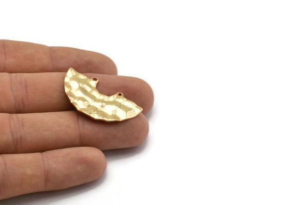 Gold Plated Brass Hammered Semi Circle Charm Pendants With 2 Holes