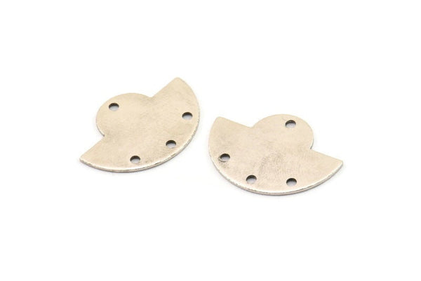 Antique Silver Plated Brass Semi Circle Blanks With 4 Holes