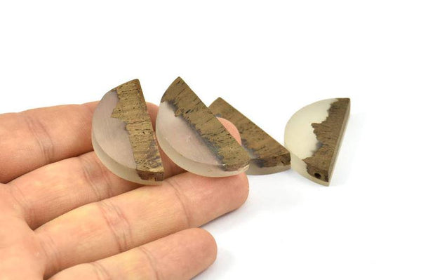 White Brown Resin&Wood Half Moon Pendant with 2 Holes