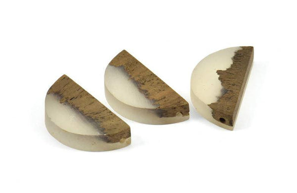 Semicircle Pendant, 5 White Brown Half Moon Pendant with 2 Holes (32x16mm) X002