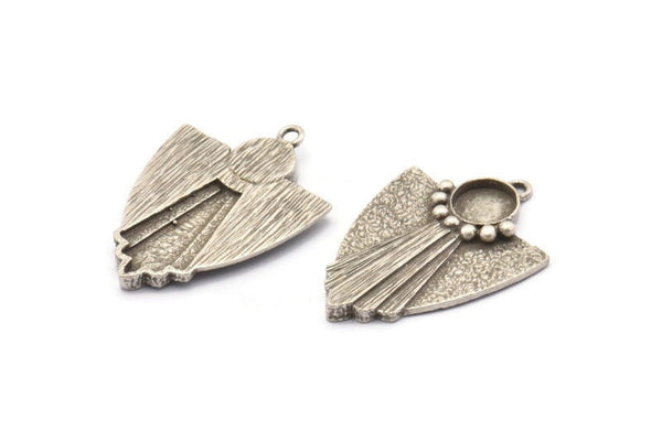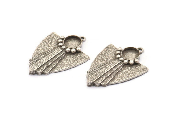 Antique Silver Plated Brass Rosette Charms With 1 Loop