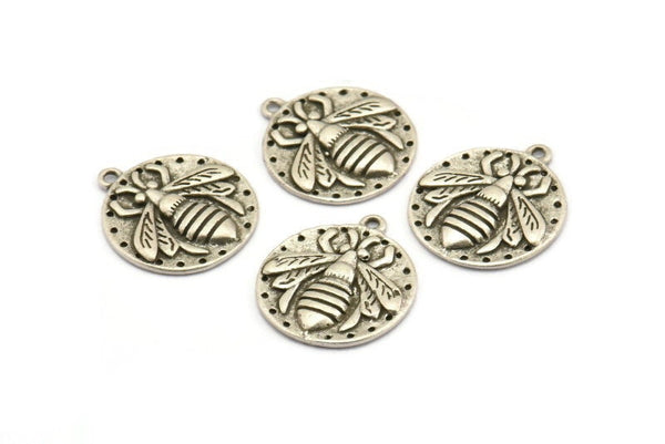 Antique Silver Plated Brass Bee Charms With 1 Loop