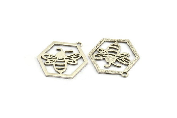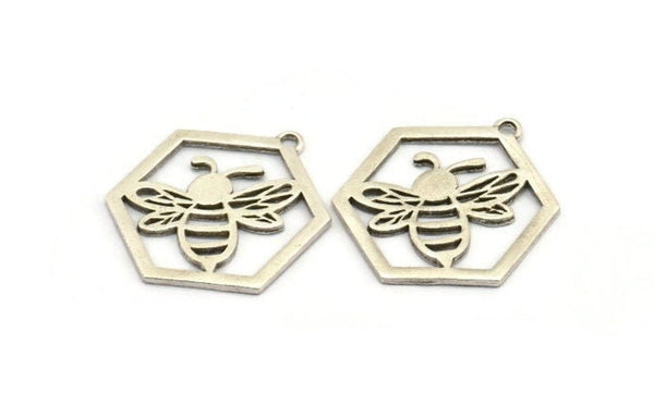 Silver Bee Charm, 2 Antique Silver Plated Brass Bee Charms With 1 Loop, Pendants, Findings (30x28x1.5mm) N1379
