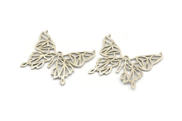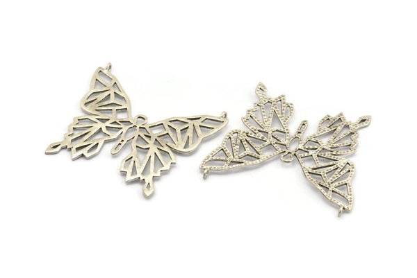 Antique Silver Plated Brass Butterfly Charm With 2 Loops