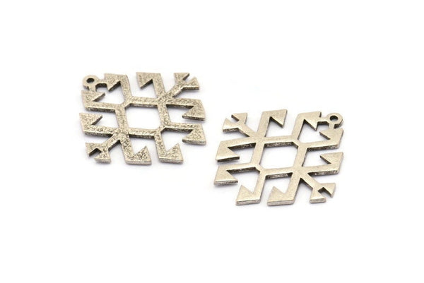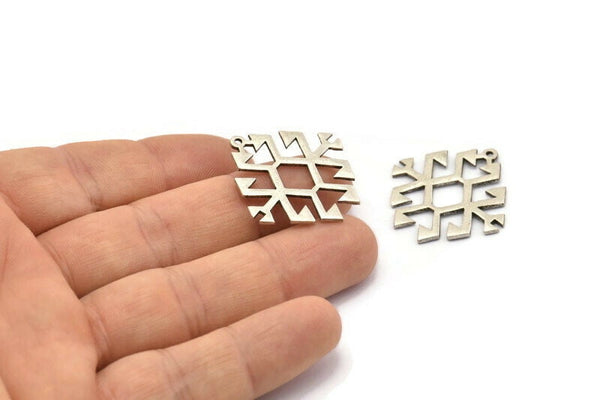 Silver Charm, 4 Antique Silver Plated Brass - Carpet Pattern - Charm Pendant - Silver Rug Pattern Charms With 1 Loop (30x29x1.2mm) N1493