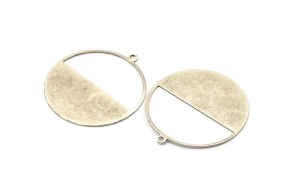 Antique Silver Plated Brass Circle Charms With 1 Loop