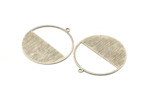 Textured Antique Silver Plated Brass Circle Charms With 1 Loop