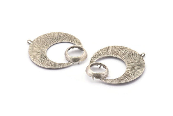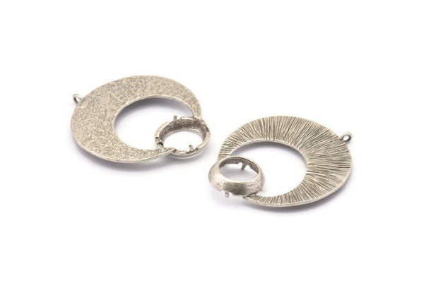 Antique Silver Plated Brass Crescent Pendants With 1 Loop and 12.5mm Pad Setting