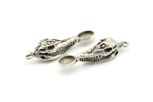 Antique Silver Plated Brass Crocodile Skull Pendants - Pad Size : 6x8mm