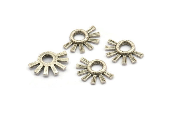 Tiny Hammered Antique Silver Plated Brass Flower Pendants