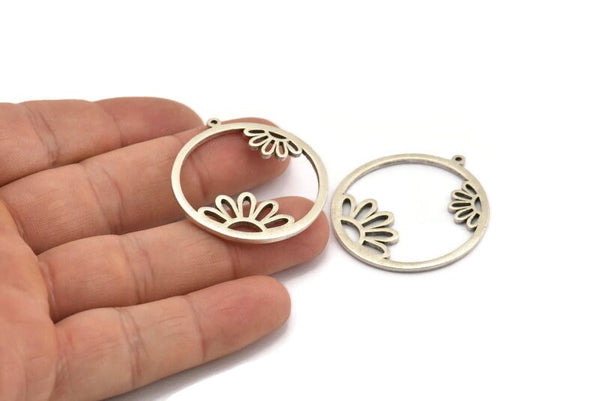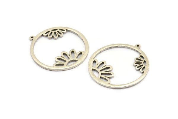 Antique Silver Plated Brass Daisy Charms With 1 Loop