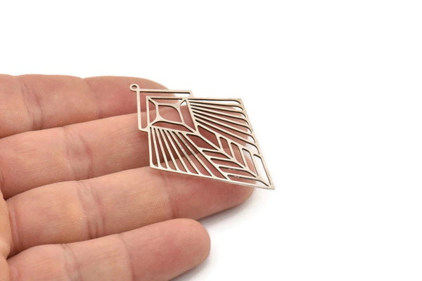 Antique Silver Plated Brass Diamond Shaped Charms With 1 Loop