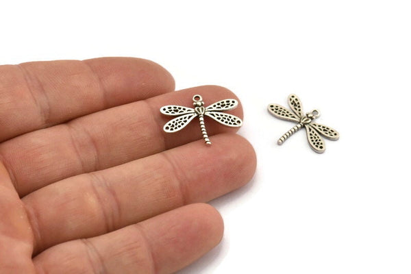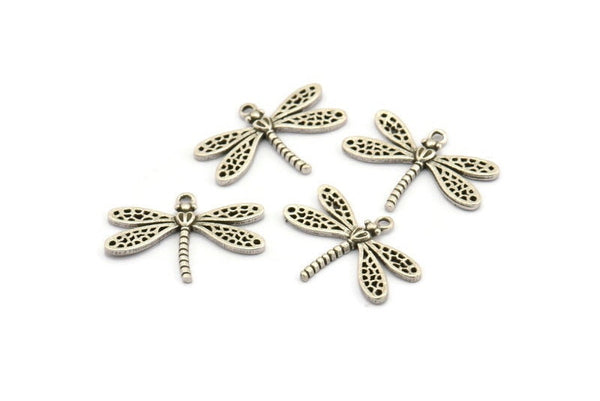 Antique Silver Plated Brass Dragonfly Charms With 1 Loop