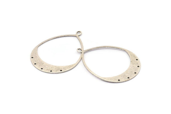 Silver Drop Charm, 2 Antique Silver Plated Brass Drop Charms With 1 Loop And 5 Holes, Pendants (49x36x0.80mm) M1011 H0868