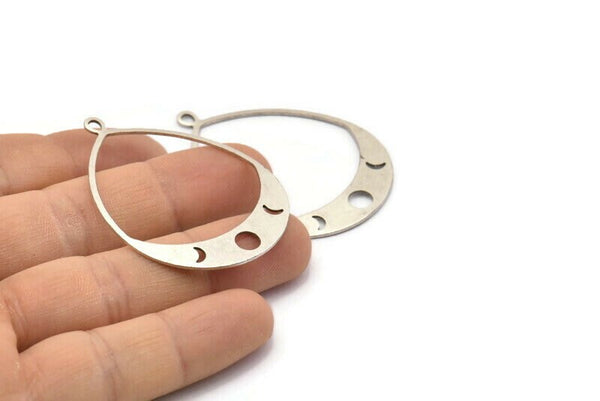 Antique Silver Plated Brass Moon Phases Charms With 1 Loop