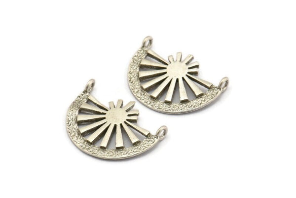 Antique Silver Plated Brass Semi Circle Pendant With 2 Loops