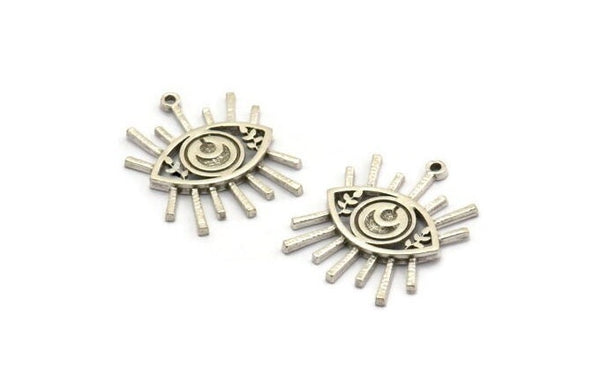 Antique Silver Plated Brass Eye Charms With 1 Loop