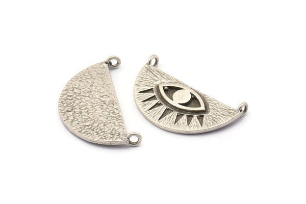 Antique Silver Plated Brass Eye Charms With 2 Loops