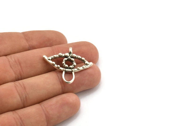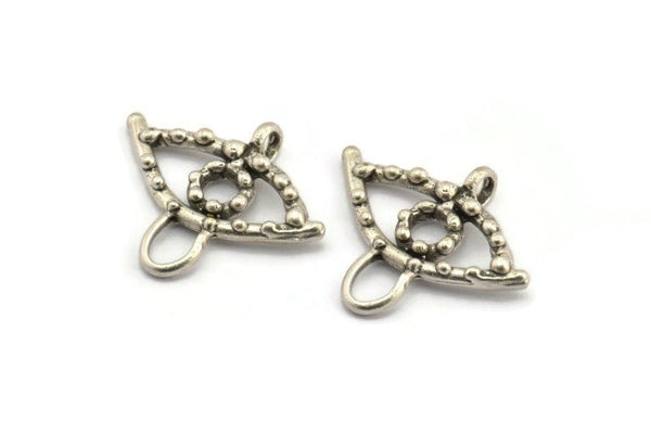 Antique Silver Plated Brass Eye Shaped Charm With 1 Loop