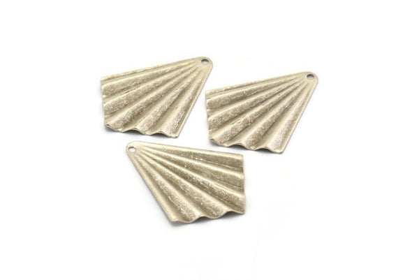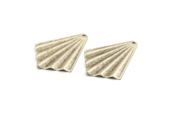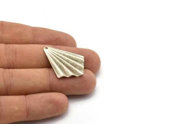Antique Silver Plated Brass Fan Shaped Charm Earrings With 1 Hole