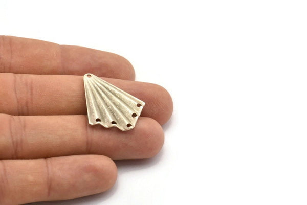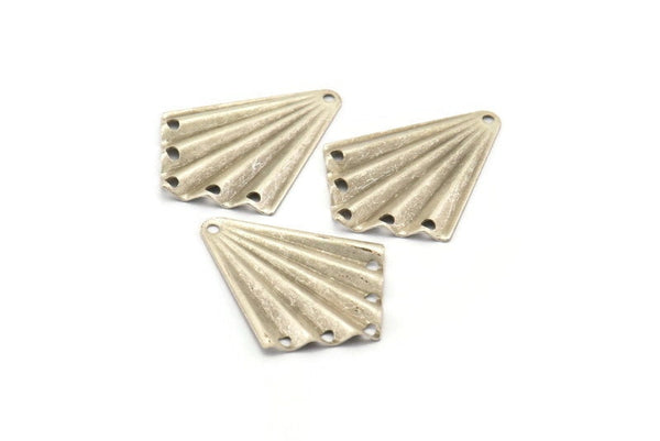 Antique Silver Plated Brass Fan Shaped Charm Earrings With 6 Holes