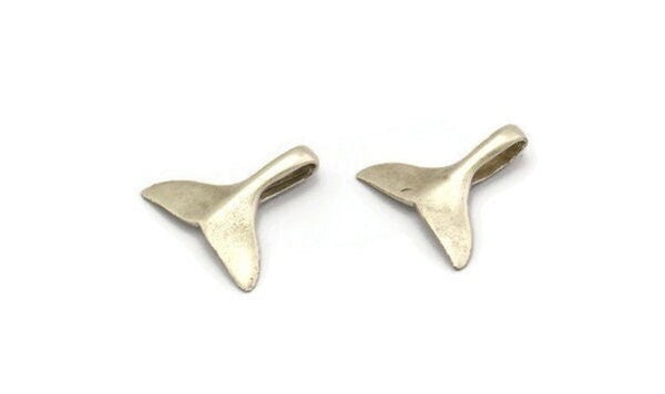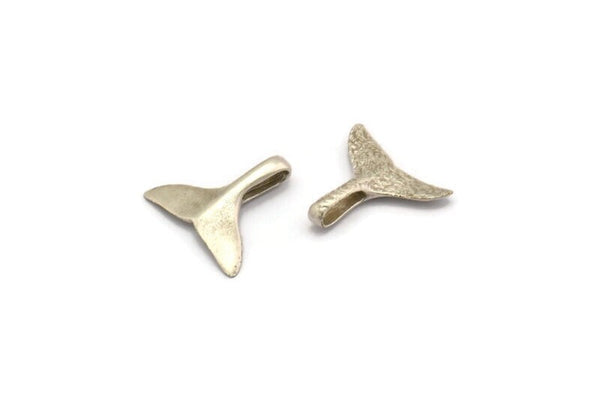 Silver Fish Tail Charm, 4 Antique Silver Plated Brass Fish Tail Pendants, Jewelry Supplies, Findings (17x19mm) N0334
