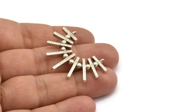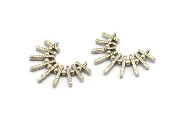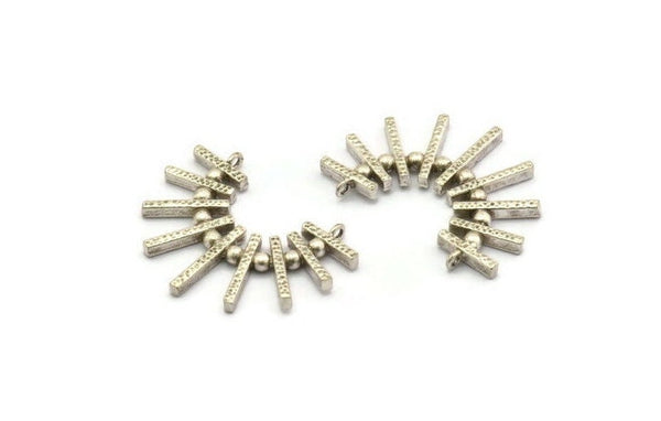 Antique Silver Plated Brass Textured Fringed Pendant With 2 Loops