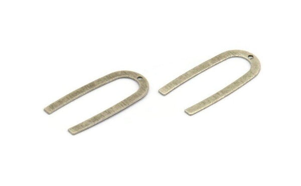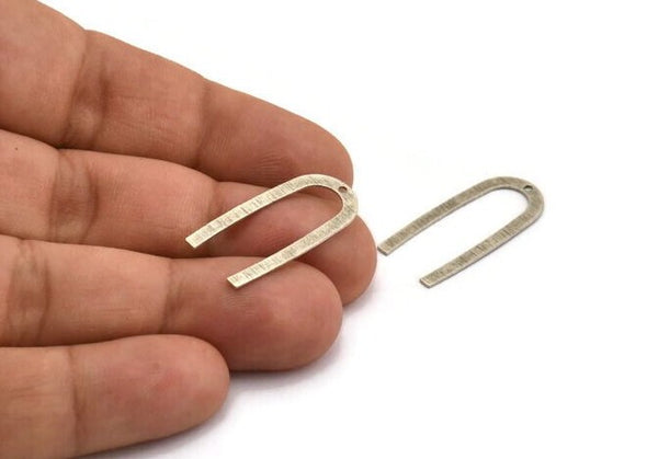 Textured Antique Silver Plated Brass U Shaped Pendants With 1 Hole