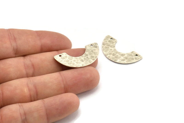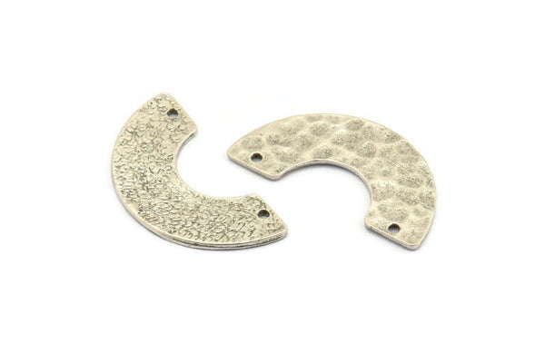 Hammered Antique Silver Plated Brass U Shaped Pendants With 2 Holes