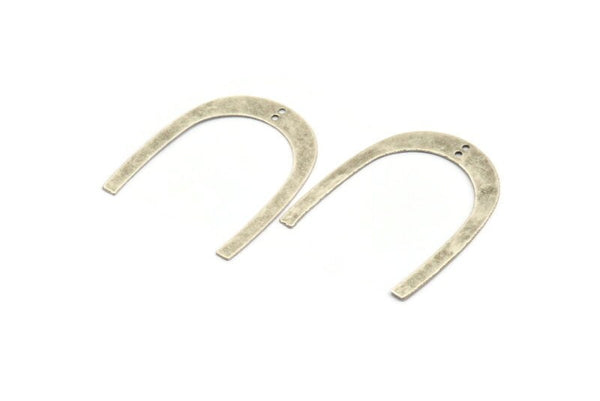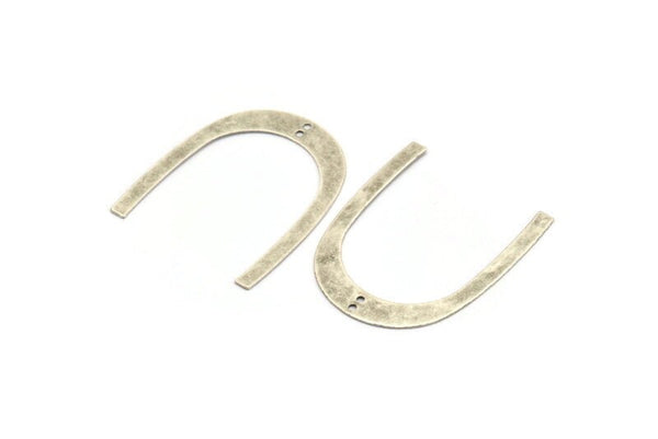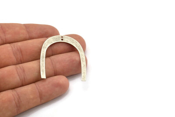 Antique Silver Plated Brass U Shaped Pendants With 2 Holes