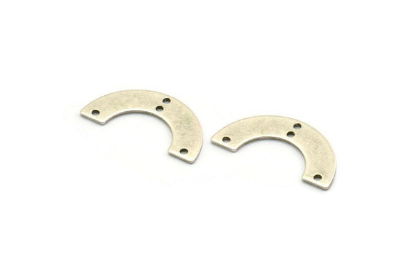 Silver Geometric Pendant, 10 Antique Silver Plated Brass Semi Circle Blanks With 4 Holes, Findings (25x12.5x5.5x0.8mm) E013