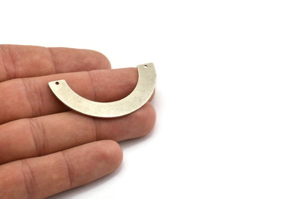 Antique Silver Plated Brass Semi Circle Blanks With 2 Holes