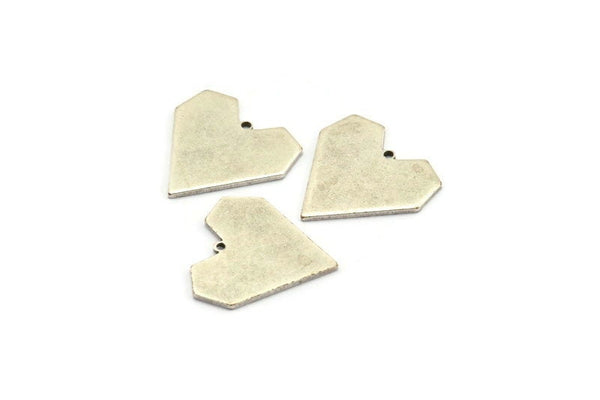 Antique Silver Plated Brass Heart Blanks With 1 Loop