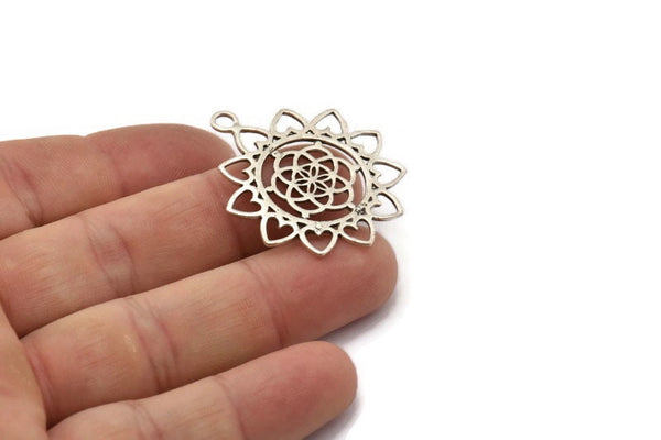 Antique Silver Plated Brass Textured Charms With 1 Loop