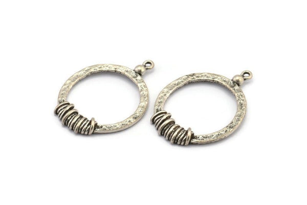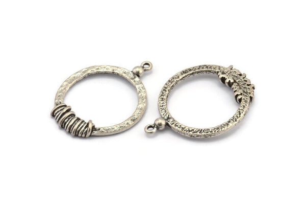 Hammered Antique Silver Plated Brass Hoop Pendant With 1 Loop