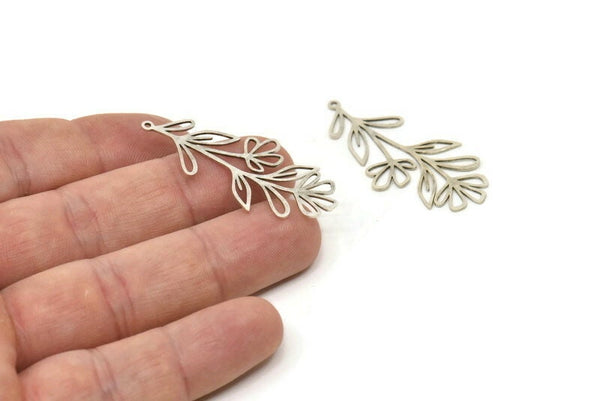 Silver Leaf Charm, 4 Antique Silver Plated Brass Branch Charms With 1 Loop, Charm Pendants (42x20x0.60mm) SMP0953 A2906