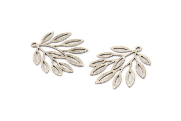 Silver Leaf Charm, 6 Antique Silver Plated Brass Branch Charms With 1 Loop, Charm Pendants (27x22.5x0.60mm) A5026